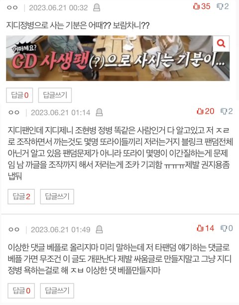 어차피 몇명이 계정 여러개로 저러는거 알아서 일부러 글에도 지디정병만 욕하고