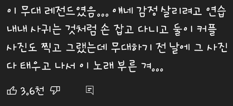 무대하기 전 날에 그 사진 다 태우고나서 불렀다고 함