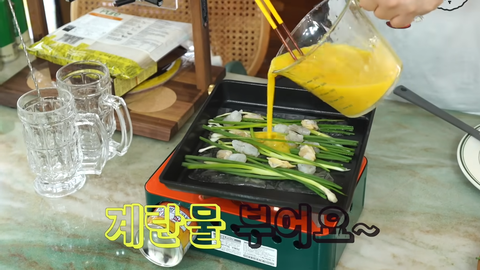 라이스 페이퍼 - 쪽파 - 해산물- 계란물 순으로 넣고