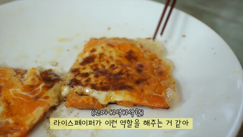 라이스페이퍼를 넣은 김치전은 전체가 바삭하다고 함