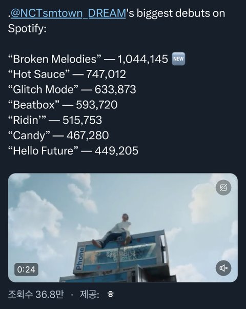 ㄷㅂ엔싀티 노래 데뷔중에 역대 1위래