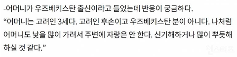 어머니가 고려인 3세라고 함