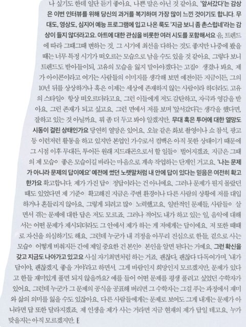 “ 다른 사람들에게는 문제로 보여도, 그게 내게는 문제가 아니라면 답 또한 달라지겠죠. 제 인생을 사는거라면 현재의 제가 답일 테고요”