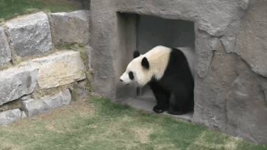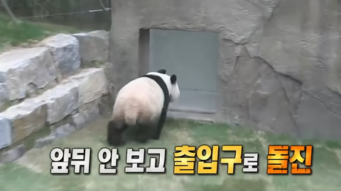 당황해하는 아이바오를 위해 다시 문을 열어줬고,
