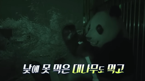 적응 못하는 아이바오를 위해 사육사(a.k.a 강바오)가 동침함