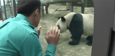 러바오(푸바오 아빠)는 사람 손에 키워져서 사람을 반기는 편인데