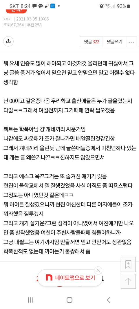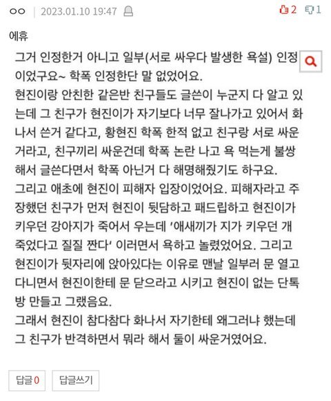 동창생글 읽어봐 상대가 먼저 현진이 친구 욕해서 그대로 받아친거야 지들이 한 욕 빼고 편집해서 퍼뜨린 인간들이 악질들인거야