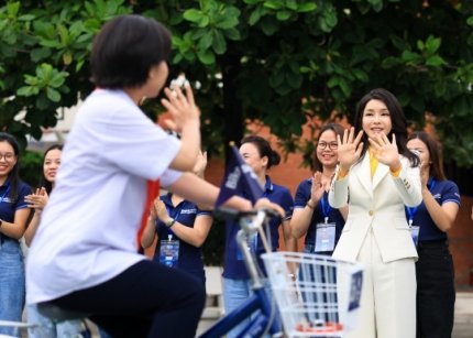 윤석열 대통령 부인 김건희 여사는 베트남 국빈방문 중 22일(현지시간) 하노이 ‘SOS 어린이마을 학교’에서 개최된 ‘바이크 런’(Bike Run) 자전거 기부 행사에 참석했다.