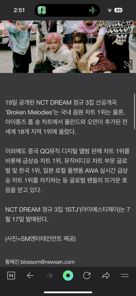 엔시티 드림 18개국 차트 1위