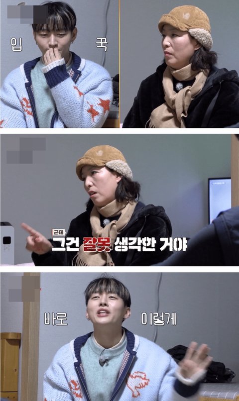 입 꾹..