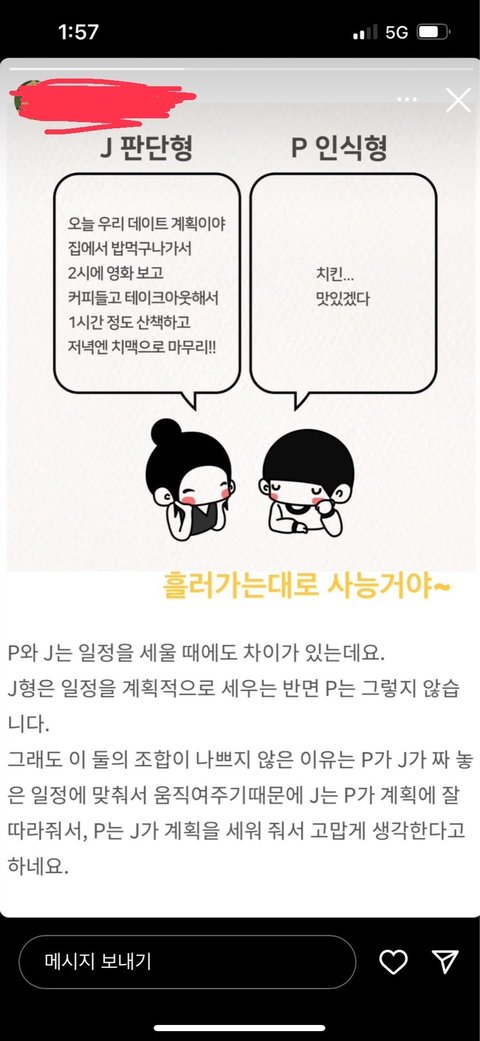 내 주위에 P인 애들을 보면 다들 자기들이 계획 없고 준비하는거 귀찮아하는걸 P 특징이라고 운운하는데 진짜 어이없다