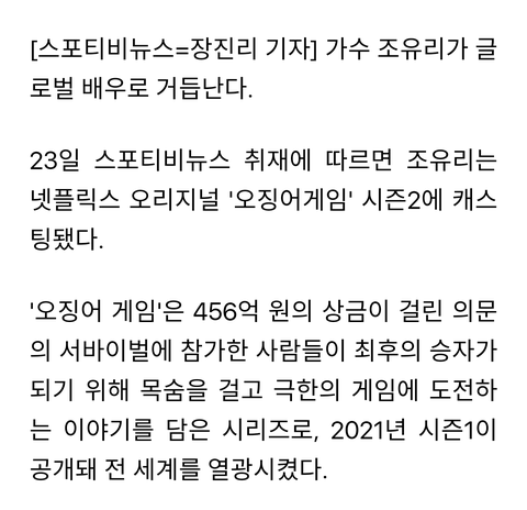 [단독]조유리, '오징어 게임' 시즌2 합류