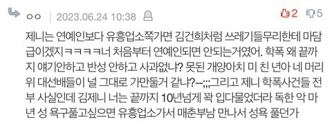 제니 글마다 이런식으로 ㅈㄴ 장문으로 개쌍욕하는 선넘는 댓글 도배하고 다니던데 진심으로 어디 아픈애임? 판에서 이런댓글을 볼줄은 몰랐네