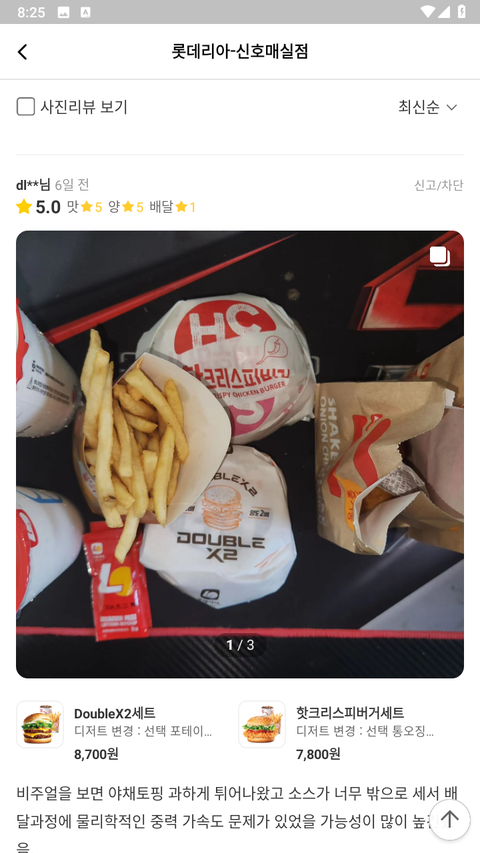 간만에 햄버거나 시켜먹을까 해서 리뷰 보는중에 신기한 리뷰 발견..