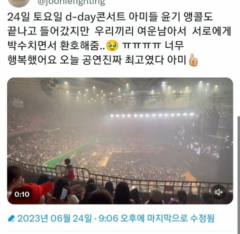 오늘 떼창쩔었다던데 너무 감동이다ㅠㅠㅠㅜ