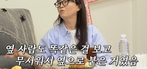 옆 사람도 똑같은 걸 보고 무서워서 옆으로 붙은 거 ㄷㄷㄷㄷㄷ