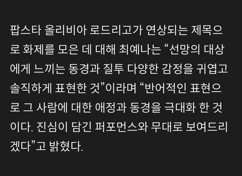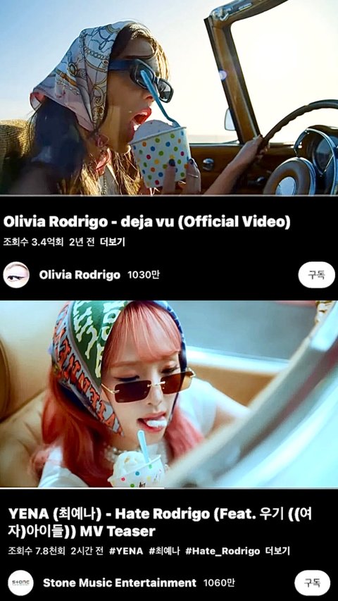 타이틀곡 제목이 ‘Hate Rodrigo’…… 여기서 말하는 로드리고는 미국 유명 팝스타 올리비아 로드리고임ㅇㅇ 근데 1집만으로 대박 흥행한 거라 예나보다 나이도 4살인가 어리고 데뷔 연차도 적음……
