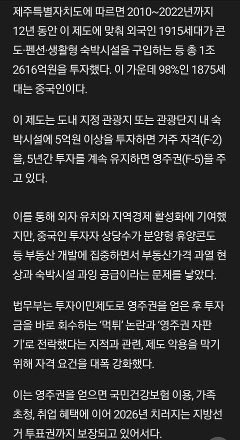 투자이민제도로 혜택본 98%가 중국인이고 숙박업을 한다고 하네요...참