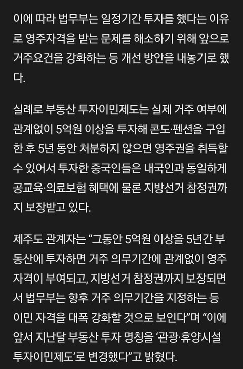 투자이민제도라고 5억짜리 부동산 구입후 5년만 지나면