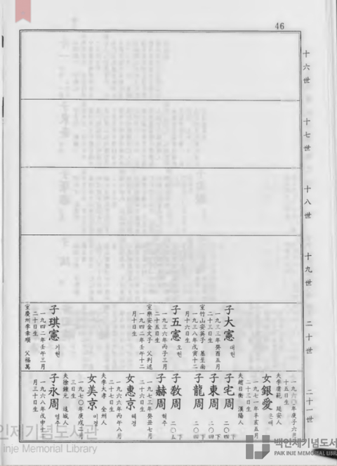 황희를 기준으로 자 황보신(黃保身), 손 황우형(黃友兄), 증손 황기(黃璣), 고손 황아생(黃亞生), 5대손 황징(黃澄), 6대손 황대훈(黃大勳), 7대손 황전(黃絟), 8대손 황우중(黃遇中), 9대손 황재준(黃再俊), 10대손 황명신(黃命信), 11대손 황승언(黃昇彦), 12대손 황두일(黃斗一), 13대손 황동규(黃東奎), 14대손 황경찬(黃璟燦), 15대손 황현(黃玹), 16대손 황대헌(黃大憲), 17대손 황동주(黃東周), 18대손 황의조(黃義助) 순으로 이어짐.