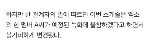 엑소가 진짜 그 이유로 녹화 무산시켰겠냐고