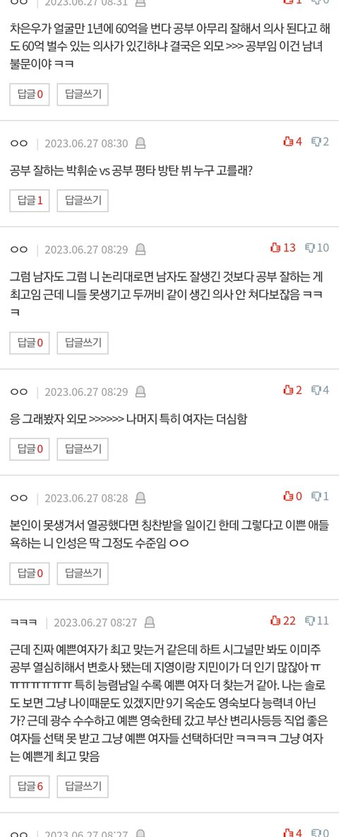 ㅅㅣ히발 수준 진짜ㅋㅋㅋ 남자한테 간택받는게 인생 목표인 애들 모임인듯