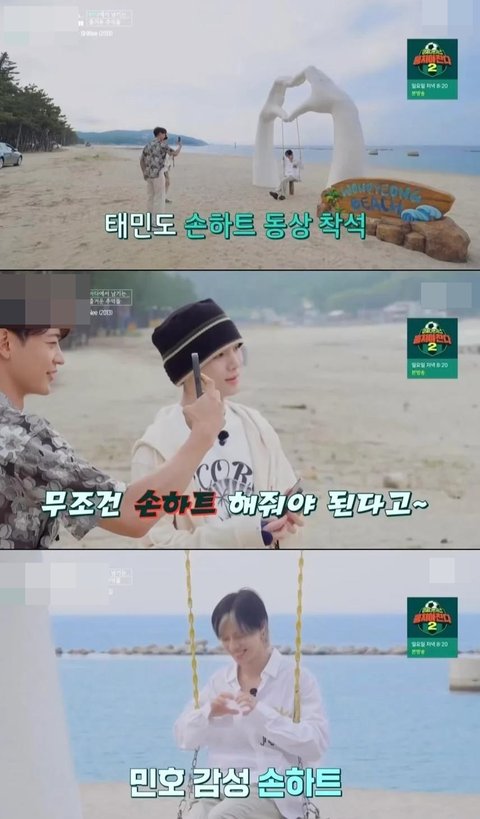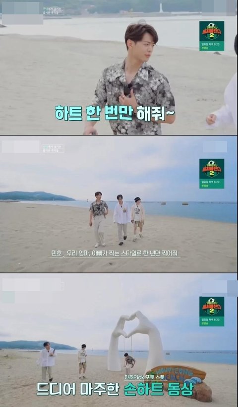 뜬금 없는 삼척해수욕장의 손하트가 맘에 든 민호