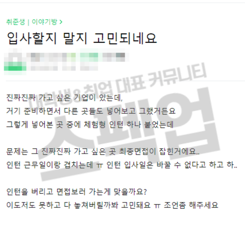 나라면 인턴 버리고 면접 보러 갔을 것 같긴한데..(차피 체험형이니까)