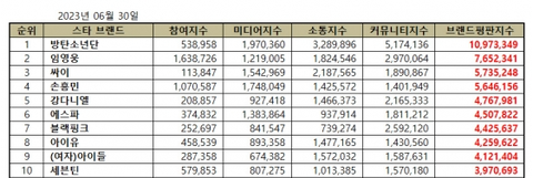 6월 브랜드평판지수