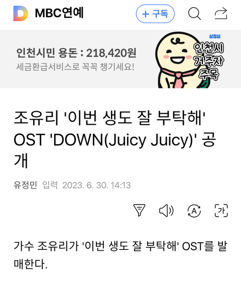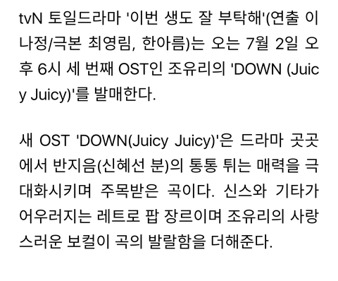 조유리 '이번 생도 잘 부탁해' OST 'DOWN(juicy juicy)' 공개
