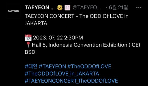 현재 태연은 투어중이고 인도네시아 자카르타에서도 공연을 할 예정이었음