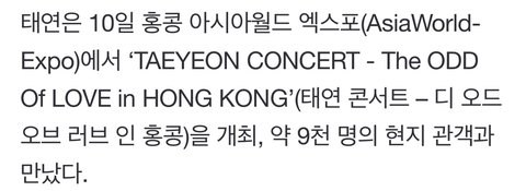 현재 태연은 모든 나라에서 아레나급 투어중이고 참고로 대만의 경우 1.3만석 티켓팅에 12만명이 몰리는 등 자리 부족이 심각했는데 겨우 5천석 규모를 대관함