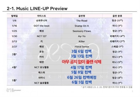 사진만 봐도 알 수 있듯이 sm이 직접 4월에 태연 컴백한다고 플랜에 넣음