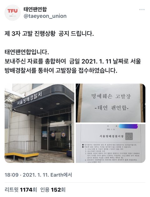태연 악플이 너무 심했는데도 전혀 고소가 안이루어져서 결국 20년도에 팬들이 3자고발을 하기로 결정함