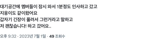 9명 다같이 팬들 있는 대기실 와서 인사하고 갔대