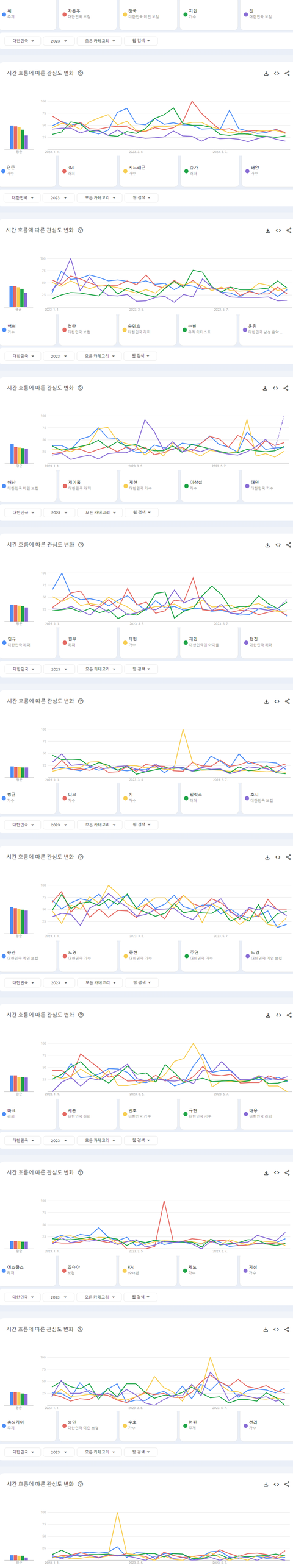 2023년 상반기 국내 구글에서 가장 많이 검색된 케이팝 남자아이돌 멤버 TOP50