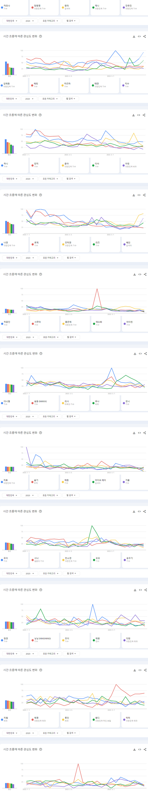 2023년 상반기 국내 구글에서 가장 많이 검색된 케이팝 여자아이돌 멤버 TOP50