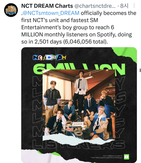 스포티파이 6월 감상자수 6백만 돌파