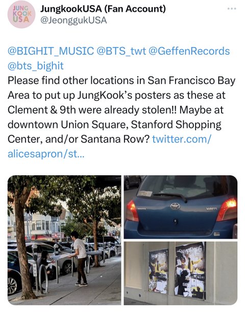 정국 싱글 홍보용 포스터 산프란시스코에 붙어있던거 훔쳐가는 사람들 찍힘