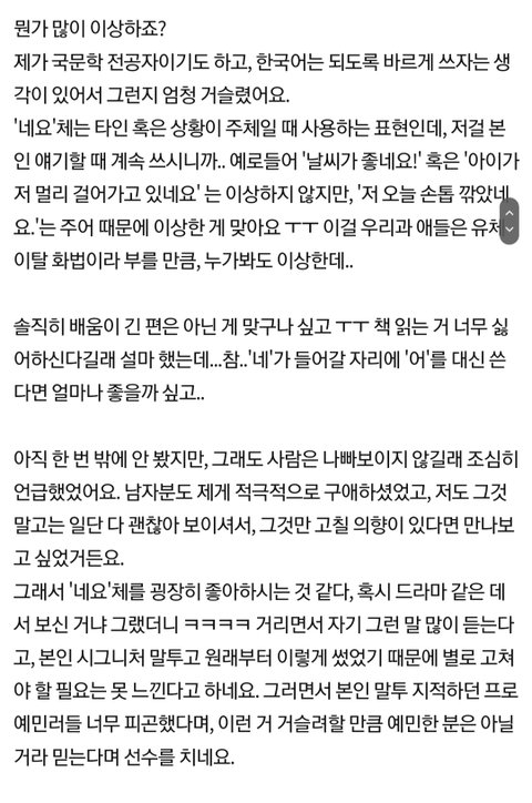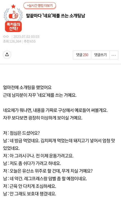[원문지킴이] 말끝마다 '네요'체를 쓰는 소개팅남