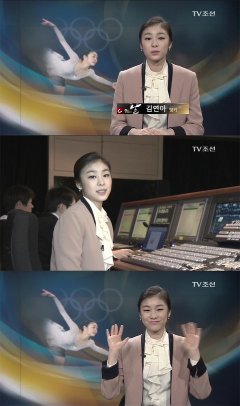 김연아는 TV조선 앵커로 정식 출연한 것이 아닌 개국 축하 인터뷰 도입 부분에 잠깐 앵커 체험을 했던 것