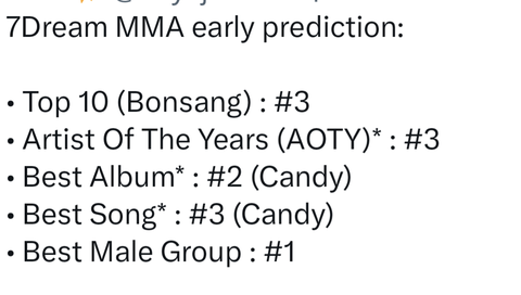 멜론뮤직어워드 7/1까지 예측