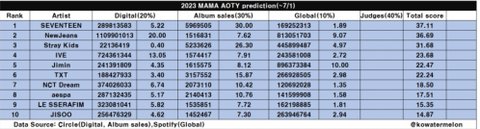 현재 MAMA 유력 대상후보