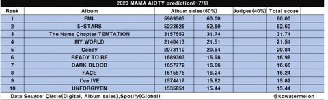 세븐틴은 10월컴백이라 사실상 4월 1번 컴백이고 뉴진스는 12월 7월 컴백 2번이라 누적이 가능해서 가수상은 뉴진스임 앨범상은 단일 앨범이라 세븐틴이고