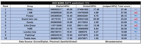 올해의가수-뉴진스,세븐틴 접전