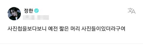 헐 정한이 뒷머리가 없어..