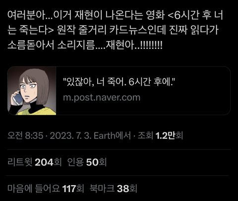 케이시=준우=재현이 맡은 역임 죽기전까지 같이 있어주겠다하는거 소름