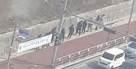 너무 신기해서 엄마한테 보여주려고 사진 찍었는데 잠깐 한눈판 사이에 사라짐; 머하는 사람들이었을까