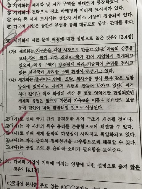 보기 (나)는 세계화가 되어가고 있는걸 얘기하고 있는 건데 정답인 3번은 세계화가 심화될수록 문화의 획일화가 되어간다는 문제점 얘기하는 거잖아. 물론 문제를 안보면 정답인건 다른게 다 너무 아니라서 3번인게 보이지만 시험은 문제대로 푸는거잖아… 저건 문제 해결에 대한 설명이 아니지 않아???