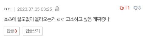 병크돌 영업글은 수도없이 올라오는 판은 불만없이 잘만 하시면서 르세라핌 쇼츠 뜨는건 '고소'까지 하고싶으시다는 우리 판녀 언냐들 수준 ㅠㅠ ㅋㅋㅋㅋㅋㅋㅋ 이야 진짜 판녀들 왜 여적여의 대명사가 됐는지 딱 알겠노 ㅋㅋㅋㅋㅋㅋ 아 근데 뭘로 고소함? 판녀 기분상해죄로 고소함?